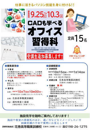 令和7年度岩手県委託訓練事業離職者等再就職訓練(知識等習得コース3ヶ月)